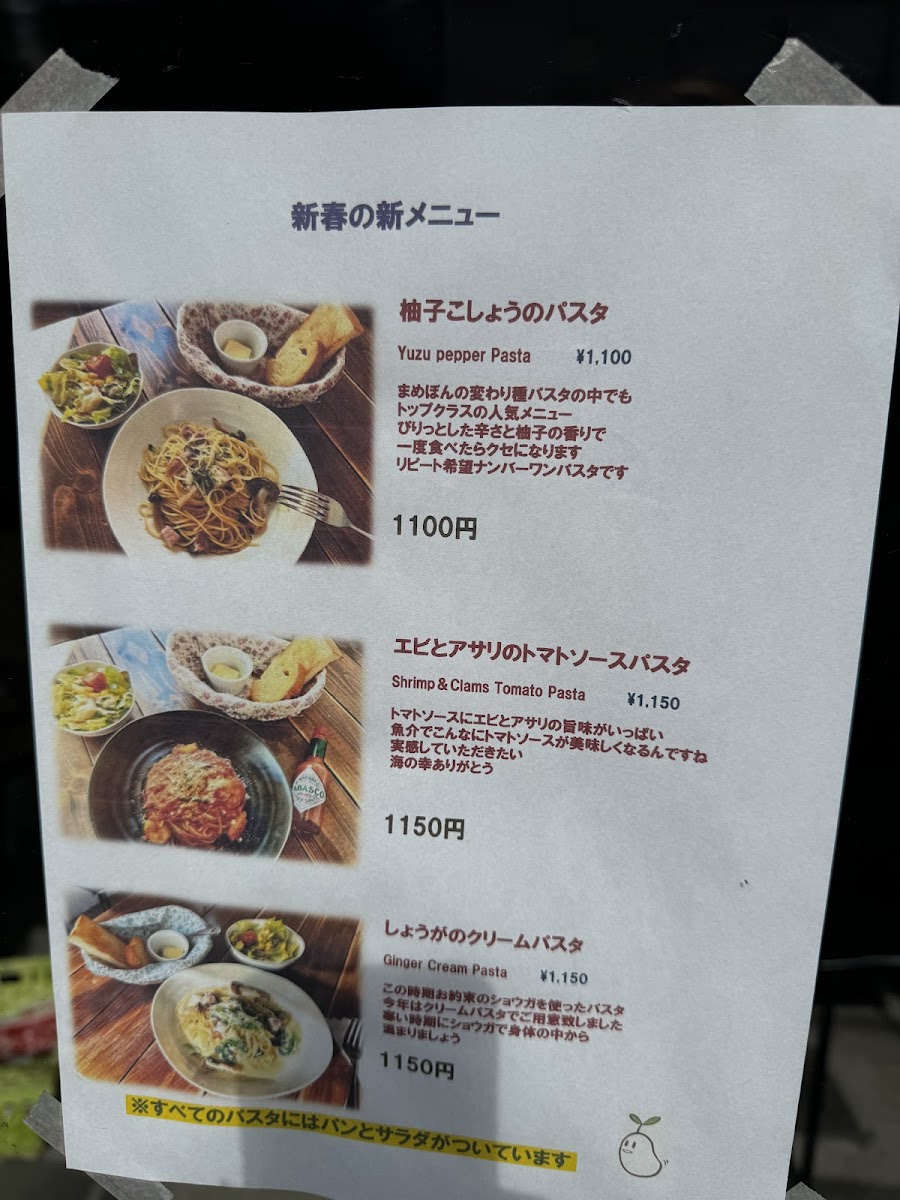 Welcome to Mamebon Cafe, a charming stop nestled in the heart of Tokushima. This delightful cafe is renowned for its inviting atmosphere, housed in a traditional old-style building that creates a cozy feeling perfect for a relaxing meal. The menu focuses primarily on pasta, with standout dishes like the ベーコンとほうれん草のトマトクリームパスタ that customers rave about. Each dish is complemented by a refreshing salad and their delightful homemade bread.